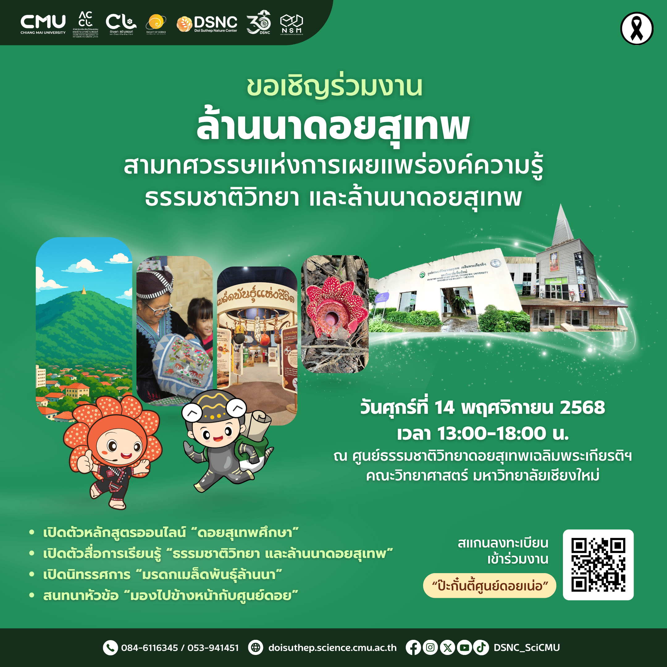 เป็นแหล่งเรียนรู้ด้านธรรมชาติวิทยา นิเวศวิทยา ธรรมชาติและสิ่งแวดล้อม ผ่านการจัดแสดง นิทรรศการ กิจกรรม/โครงการ และการอบรมบริการวิชาการต่าง ๆ แก่กลุ่มเป้าหมายซึ่งเป็น เด็ก เยาวชน ครอบครัว และบุคคลทั่วไป อีกทั้งยังให้บริการข้อมูลด้านธรรมชาติวิทยา ดอยสุเทพ เพื่อถ่ายทอดความรู้ความเข้าใจตลอดจนสร้างความตระหนักแก่ชุมชนให้เห็นความ สำคัญของการรักษาสิ่งแวดล้อม และอนุรักษ์ทรัพยากรธรรมชาติ โดยเฉพาะอย่างยิ่งในพื้นที่ดอยสุเทพ นอกจากนั้น ศูนย์ฯ ยังถือเป็นตัวกลางในการสร้างเครือข่ายและพื้นที่แลกเปลี่ยนเรียนรู้เพื่อส่งเสริม ชุมชนให้เป็นมิตรกับสิ่งแวดล้อม