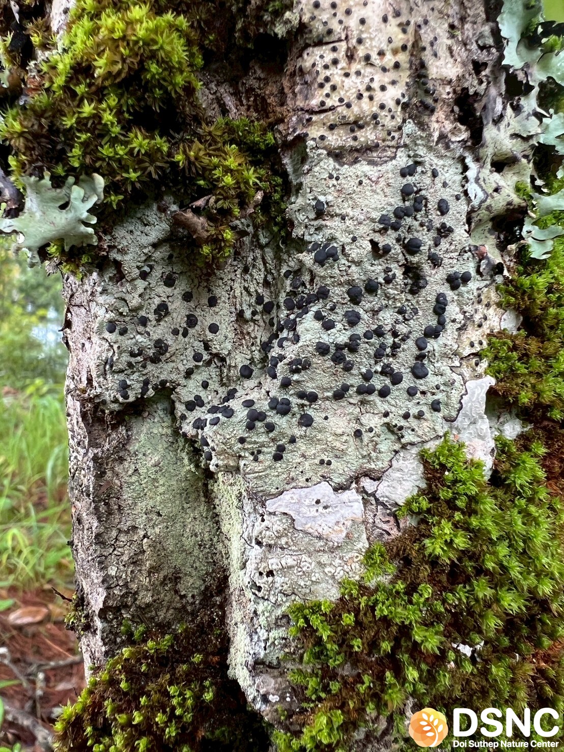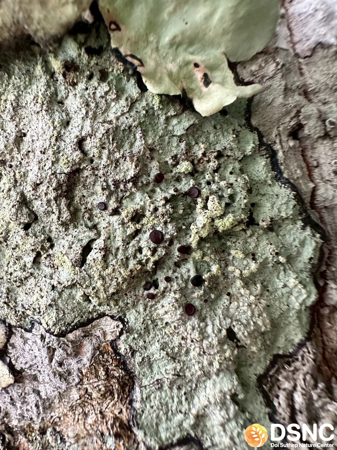 ไลเคนกลุ่ม crustose ขนาดใหญ่ แนบติดกับเปลือกไม้ มีสี เขียวอมเทา เทาอ่อน หรือเทาเขียว ผิวเรียบหรือมี ตุ่มนูนเล็ก ๆ (tuberculate) ซึ่งเป็นลักษณะเด่นสำคัญของชนิดนี้