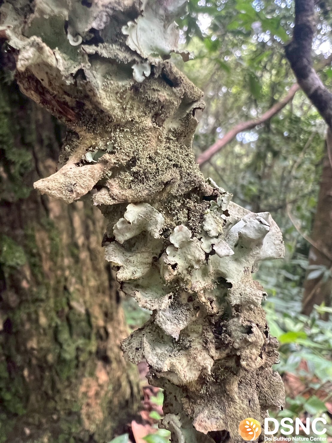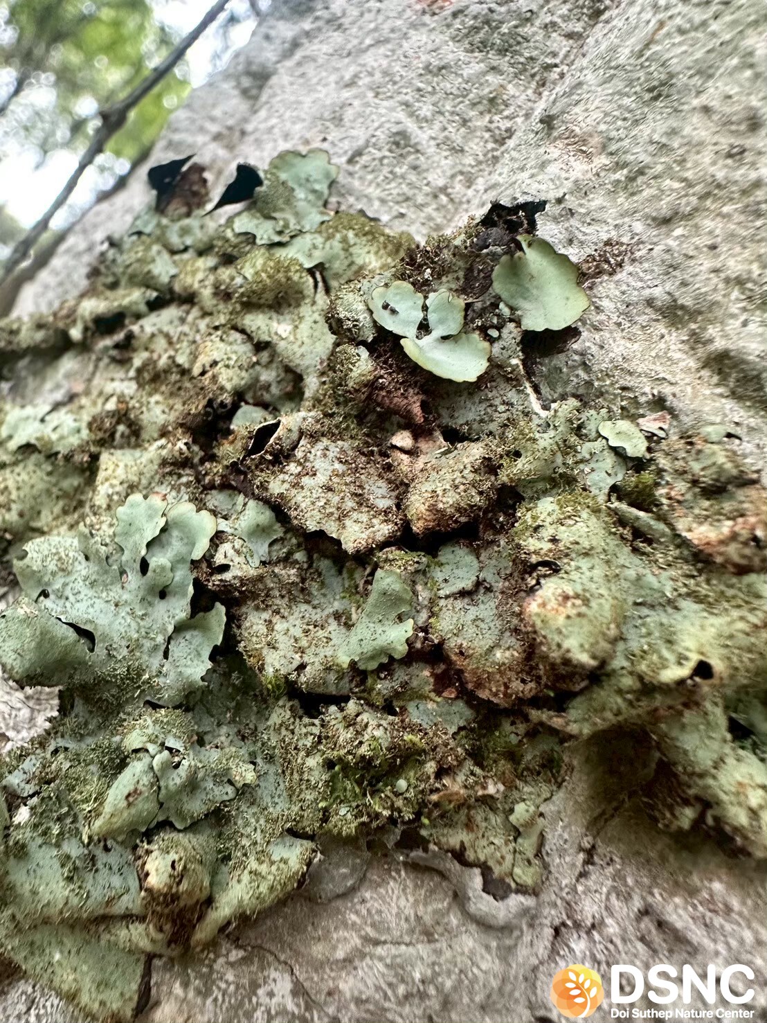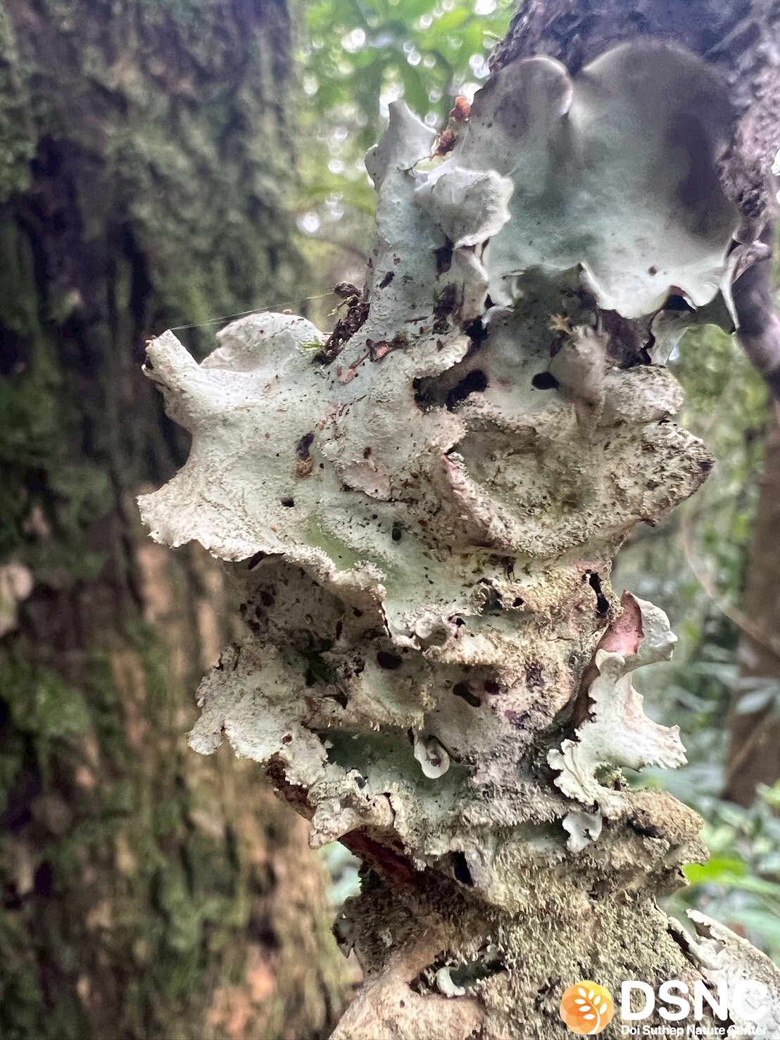 ไลเคนกลุ่ม foliose (แผ่นใบ) ขนาดกลางถึงใหญ่ แผ่เป็นแผ่นใบกว้าง มีสี เทาอ่อนถึงขาวเทา ผิวเรียบ ขอบแผ่นใบหยัก