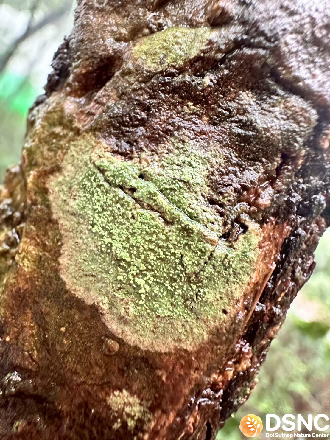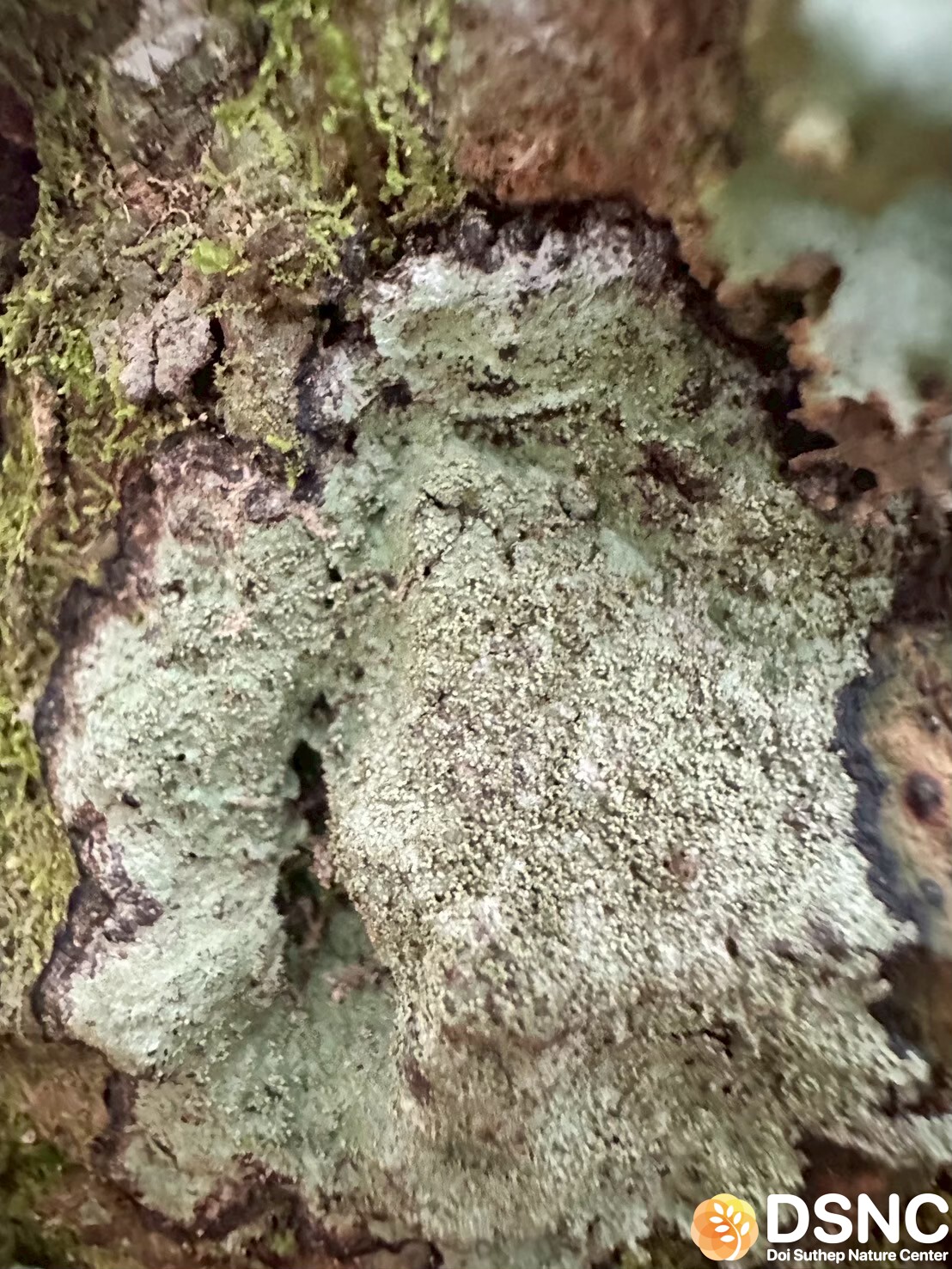 ไลเคนกลุ่ม crustose แนบติดผิววัสดุอย่างแน่นหนา เช่น เปลือกไม้ หิน หรือดิน ลักษณะเป็นแผ่นบาง สี เทา ขาว ครีม เขียวอมเทา หรือเหลืองอ่อน ผิวอาจเรียบ แตกละเอียด หรือมีลักษณะคล้ายฝุ่น