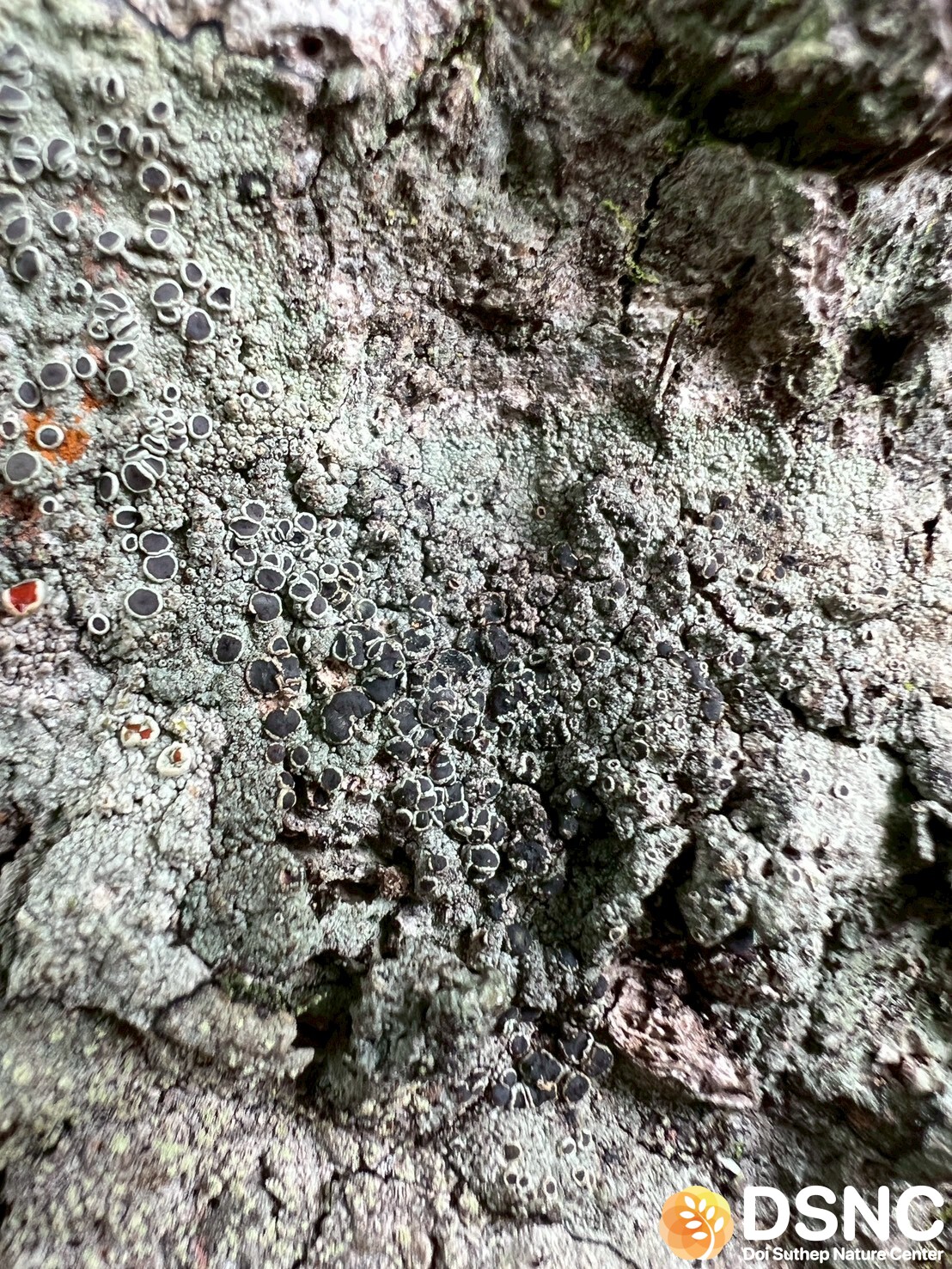 ไลเคนกลุ่ม crustose แนบผิวแน่น สี เทาอ่อน เทาเขียว หรือขาวนวล ผิวเรียบหรือแตกเล็กน้อย ขอบเขตไม่ชัดเจน พบได้ทั้งบน หินกรด หินด่าง และเปลือกไม้ ในสภาพแวดล้อมหลากหลาย